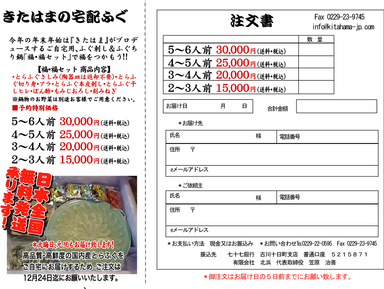 ◎ふぐの宅配・お歳暮に・年越しに・お正月に・きたはまの宅配ふぐ料理